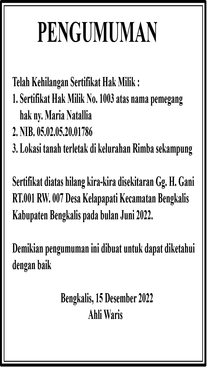 INFO A1 HILANG