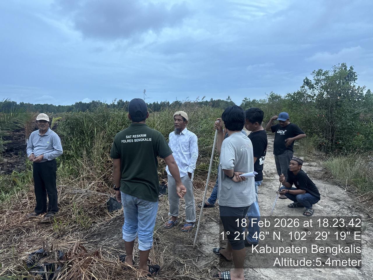 Atas perintah Kasat Reskrim, tim segera turun ke lokasi dan berkoordinasi dengan perangkat desa setempat. Di lokasi ditemukan adanya kebakaran lahan milik warga seluas kurang lebih ±3 hektare dengan jenis tanah mineral bercampur gambut tipis.