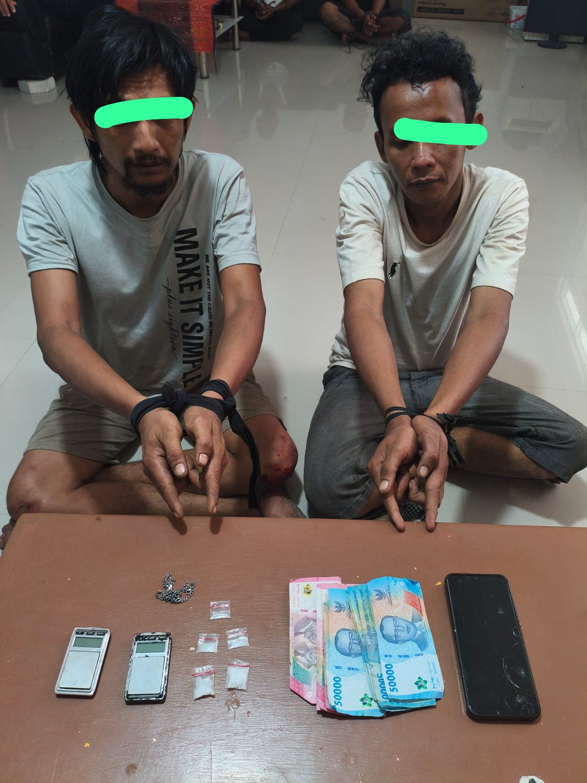 Kedua tersangka masing-masing berinisial E.F.Y (33) dan N.S (35). Dari tangan keduanya, petugas berhasil menyita sejumlah barang bukti berupa 2 paket besar dan 3 paket kecil diduga narkotika jenis sabu, satu unit handphone, uang tunai sebesar Rp750.000, serta dua unit timbangan digital.