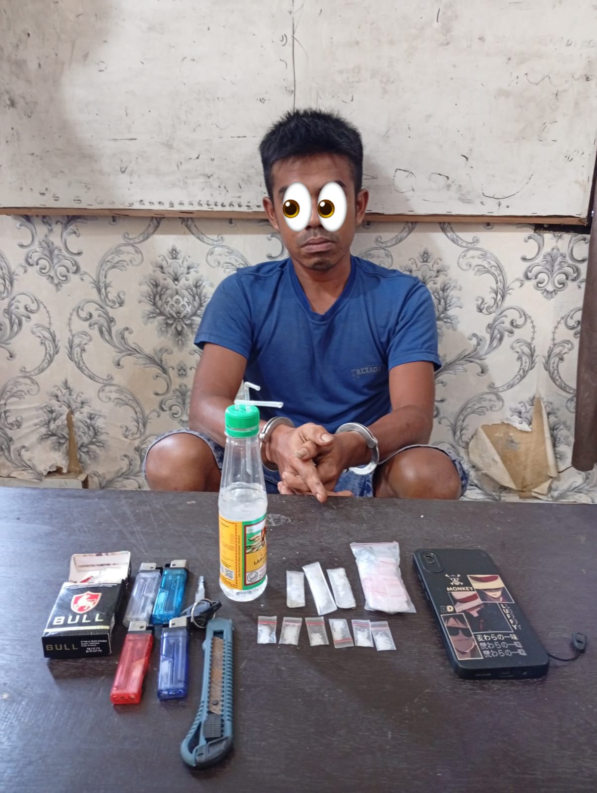 Selain itu, hasil tes urin terhadap tersangka menunjukkan hasil positif (+) mengandung methamphetamine.