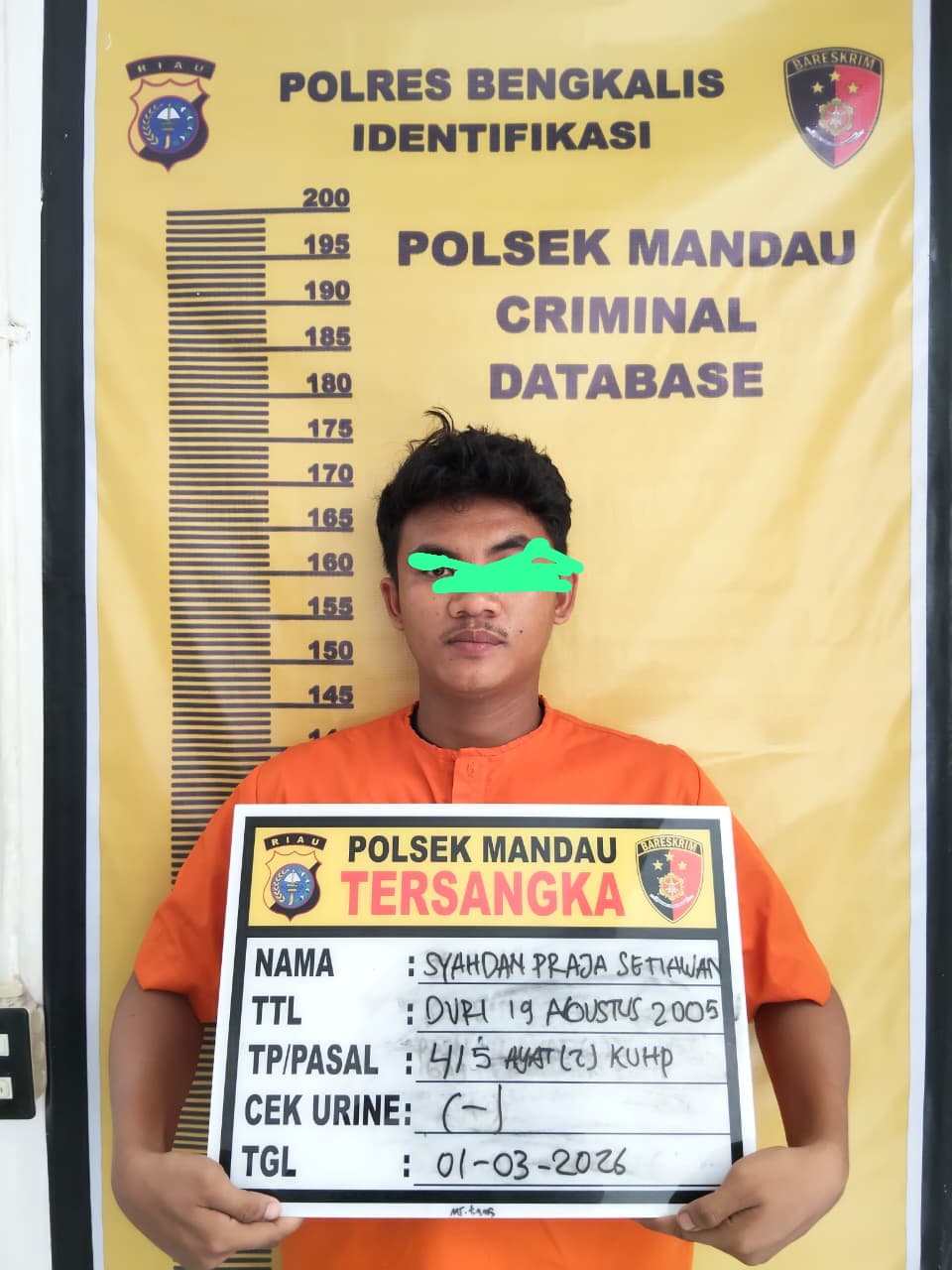 Pengungkapan kasus tersebut berdasarkan Laporan Polisi Nomor: LP/A/22/III/2026/SPKT/RIAU/RES-BKS/SEKMANDAU yang diterima pada Minggu, 01 Maret 2026.